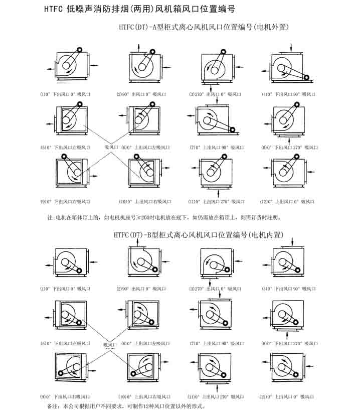 一、HTFC(DT)-I、II、V 系列低噪聲消防排煙(兩用)風(fēng)機(jī)箱