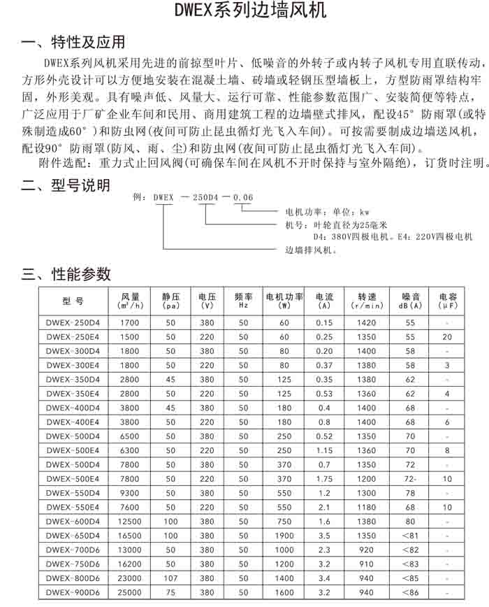 十二、DWEX 系列邊墻式風(fēng)機(jī)