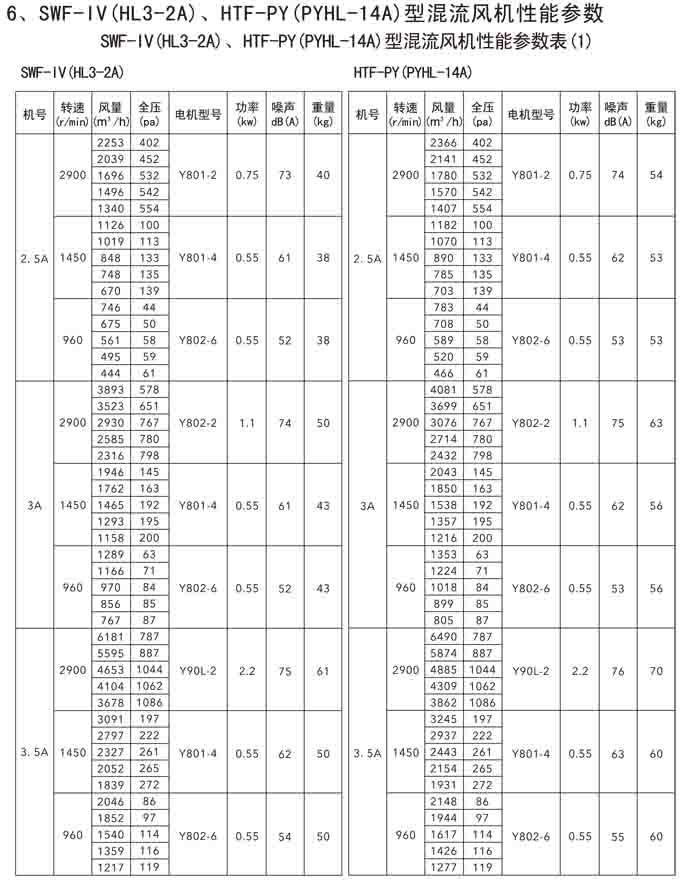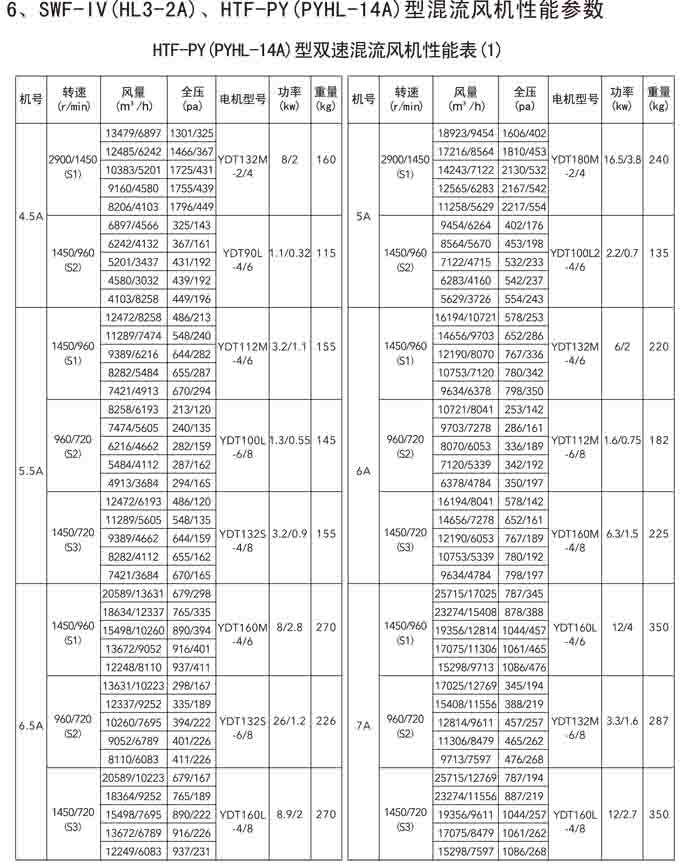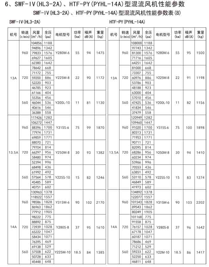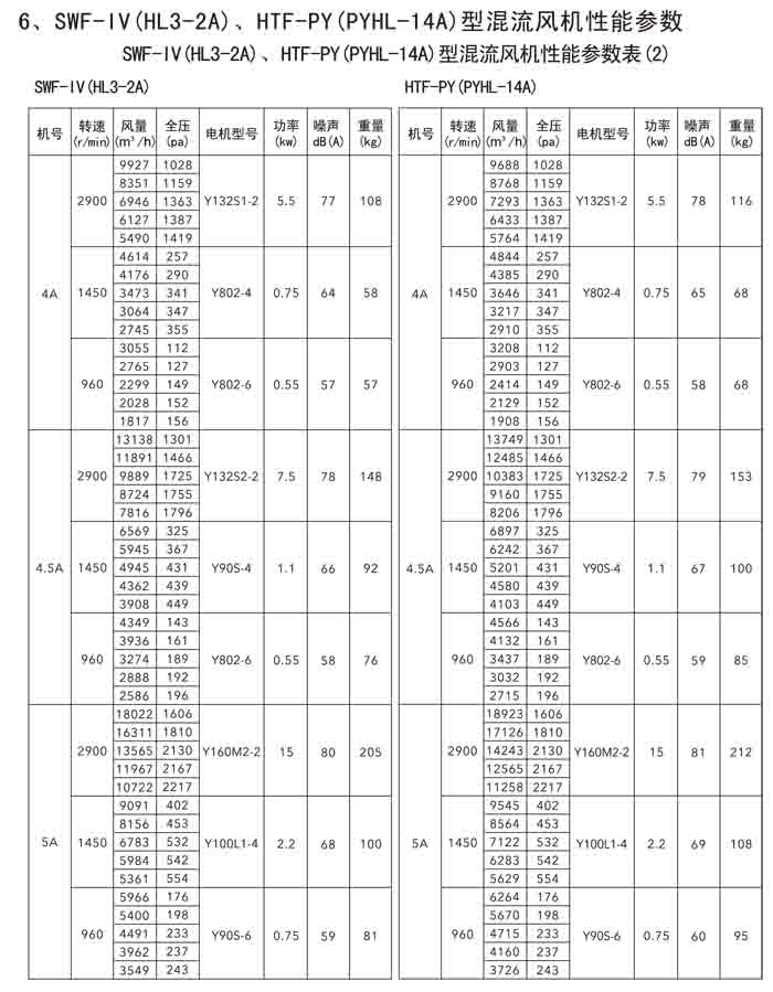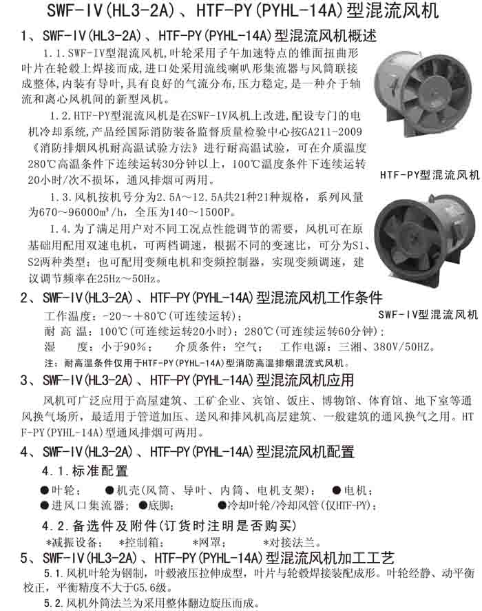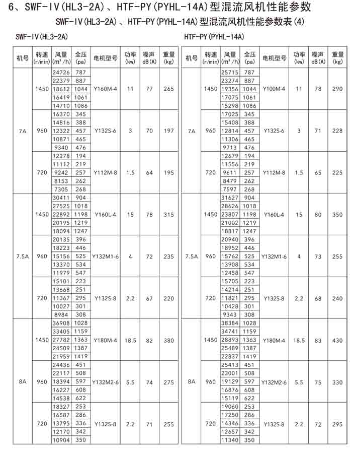 三、SWF-IV(HL3-2A)、HTF-PY(PYHL-14A)系列節(jié)能混流風機
