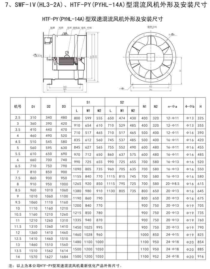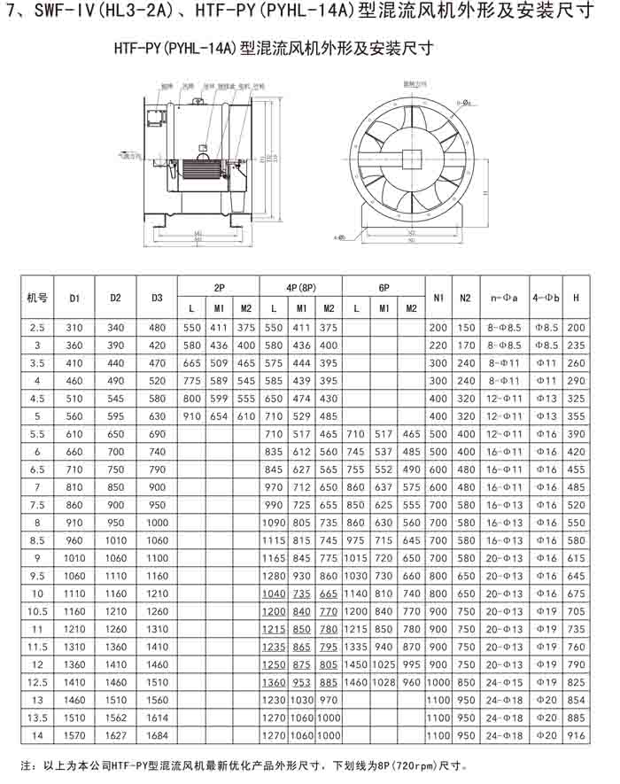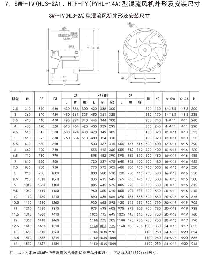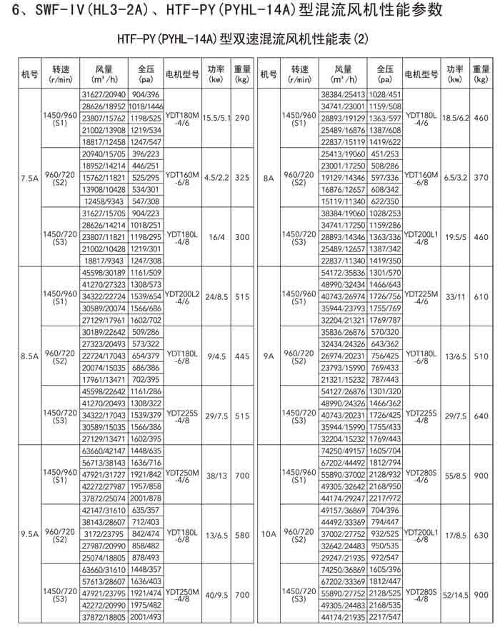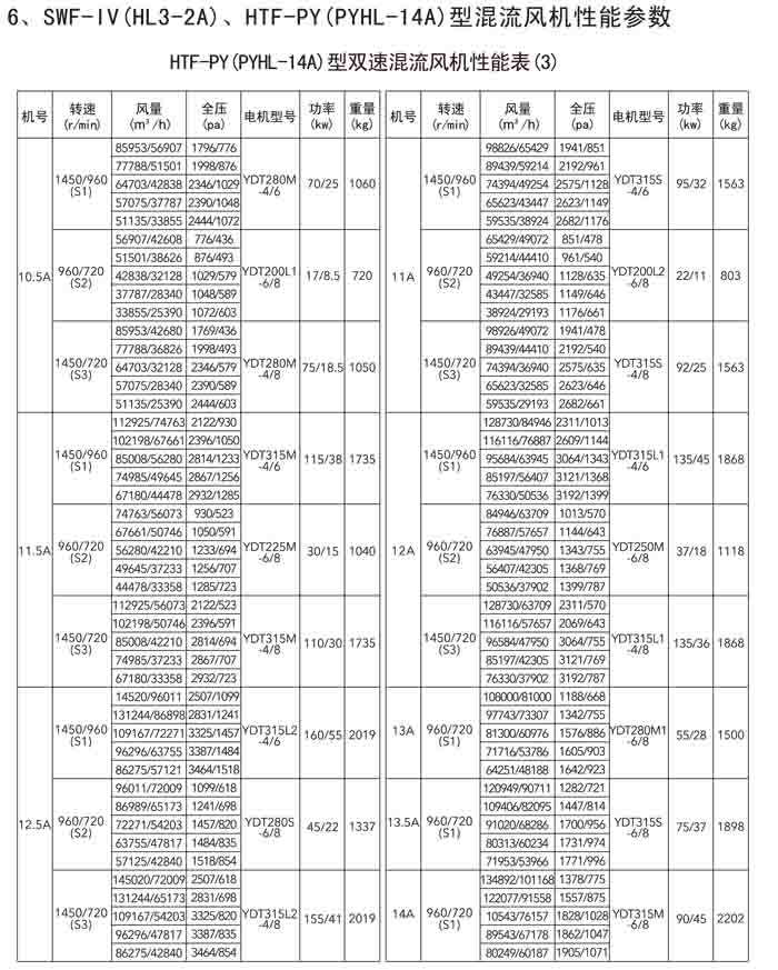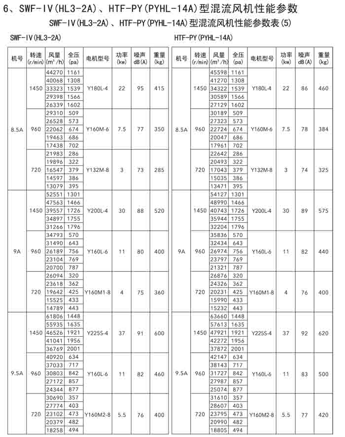 三、SWF-IV(HL3-2A)、HTF-PY(PYHL-14A)系列節(jié)能混流風機