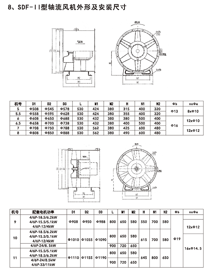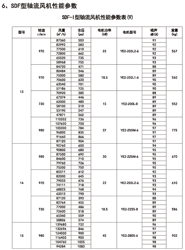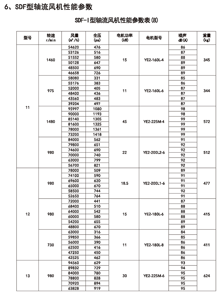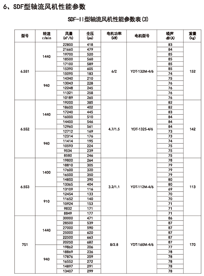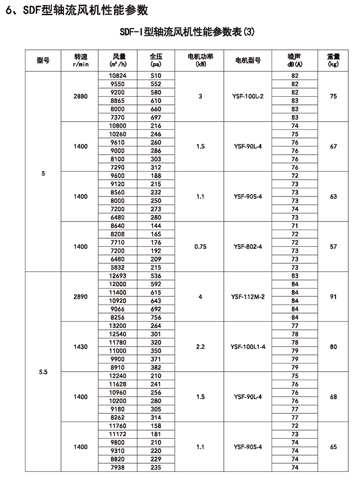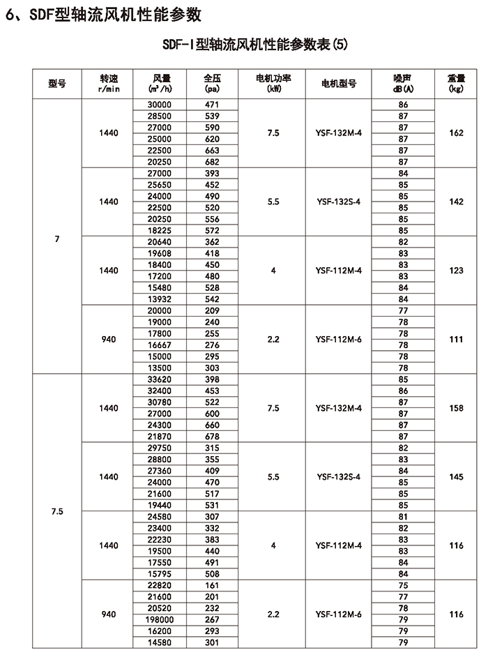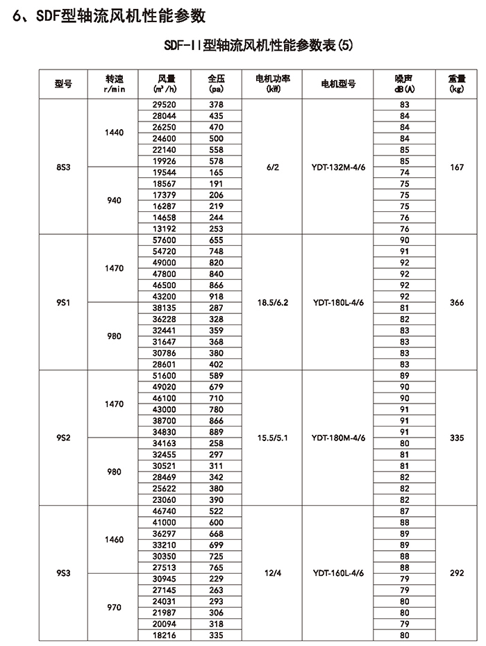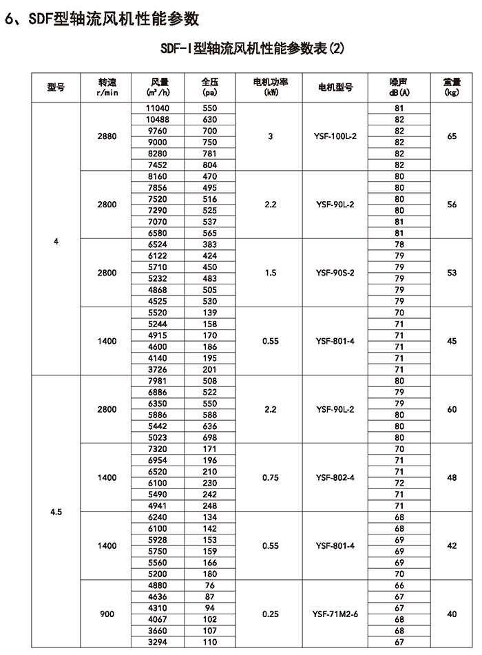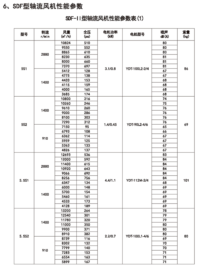 五、SDF 系列加壓軸流風(fēng)機(jī)